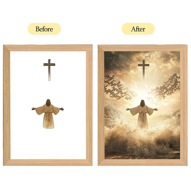 Chaque cadre Gloriiarts est bien plus qu’une œuvre décorative. C’est un hommage à la foi chrétienne, conçu pour inspirer et illuminer votre intérieur tout en apportant sérénité et beauté.